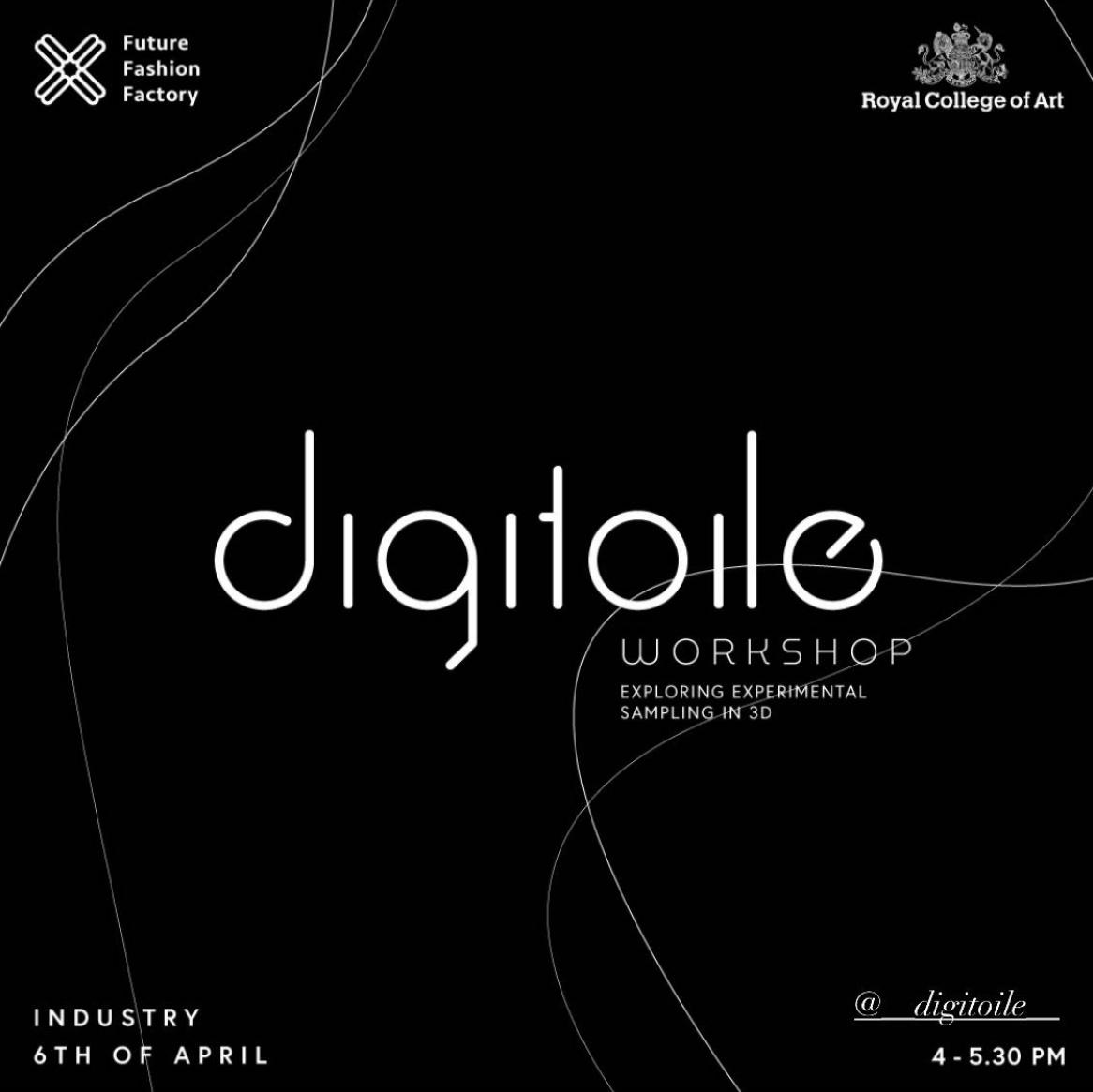 Digitoile.3D is a Future Fashion Factory (FFF) funded R&D project by designer Kath McGee, a customisable digital platform to promote experimentation and liberate designers from wasteful physical sampling processes. The workshops will explore user experience insights from industry partners. Funded by the Arts & Humanities Research Council.